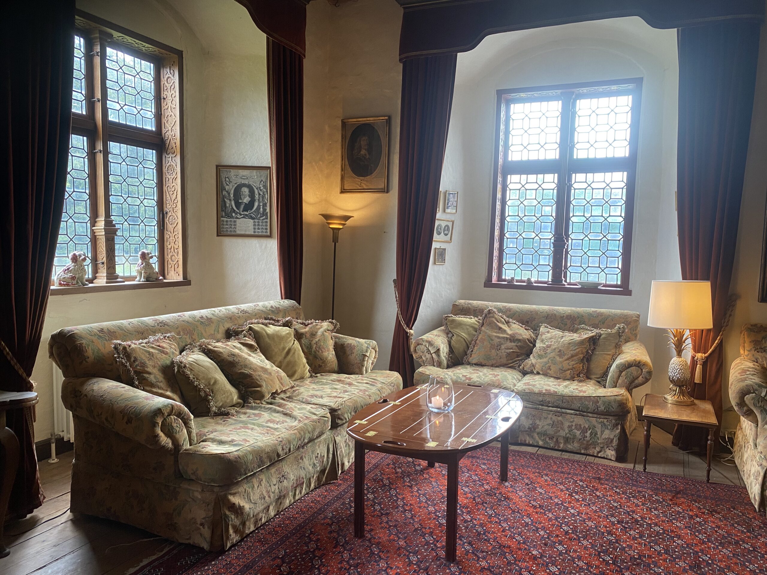 Så blev det tid til at få serveret kaffe i de gamle stuer. Senere blev der også serveret gourmetsnacks og champagne her.